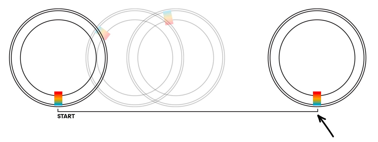 4. Roll one full revolution. Place the circular object on the line so that the edge of its rim touches the line, lining up the starting mark on your object with the line. Slowly roll the object along the line until the marked point touches the line again. Mark this spot – this is the circumference!